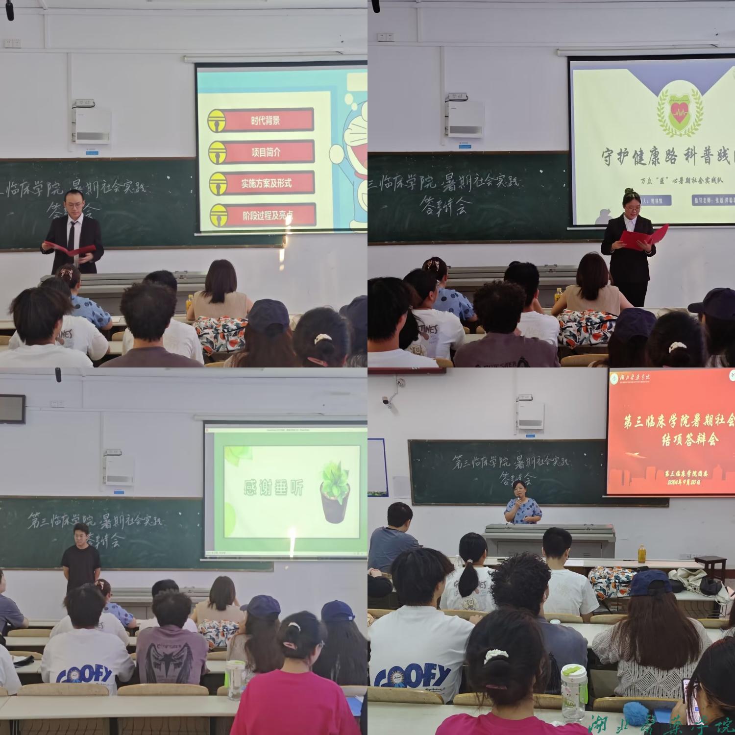 本网讯(通讯员 邵欣怡 朱力)9月20日下午,第三临床学院在5216教室开展2024年暑期社会实践答辩,学院党委副书记李芹及全体学工干部担任评委,答辩会由学院团委副书记朱力主持。