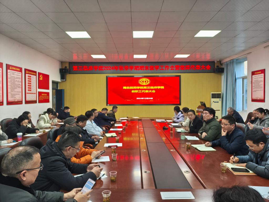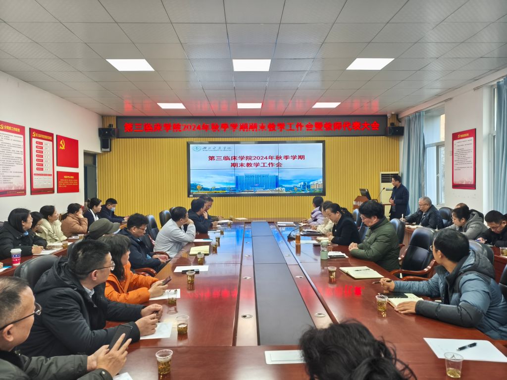 本网讯(通讯员 郏广翔)12月26日下午,第三临床学院在人民校区教学楼一楼会议室召开2024年秋季学期期末教学工作会暨教师代表大会。学院领导班子成员出席会议,教学督导员、教学办公室、科研与研究生教育办公室及各教研室教学管理干部参加了此次会议。会议由党委书记桂程君主持。