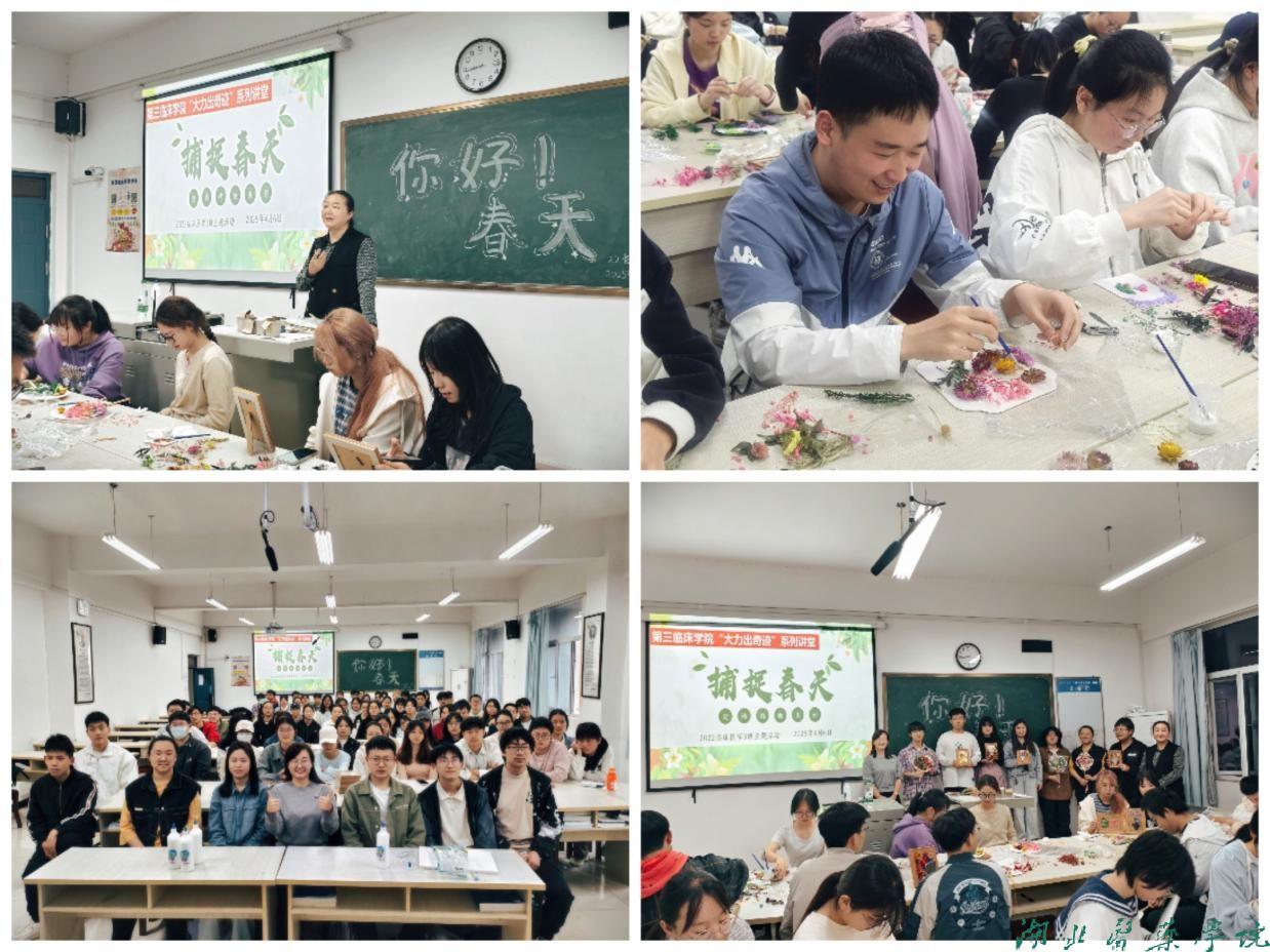 本网讯(通讯员 周湘宁 朱力)为疏解学生学业压力,实现身心的放松,4月13日晚上,第三临床学院在人民校区503教室开展“大力出奇迹——捕捉春天·粘出美好”心理团辅活动,第三临床学院党委书记桂程君、团委副书记朱力及2022级同学参与了此次活动。
