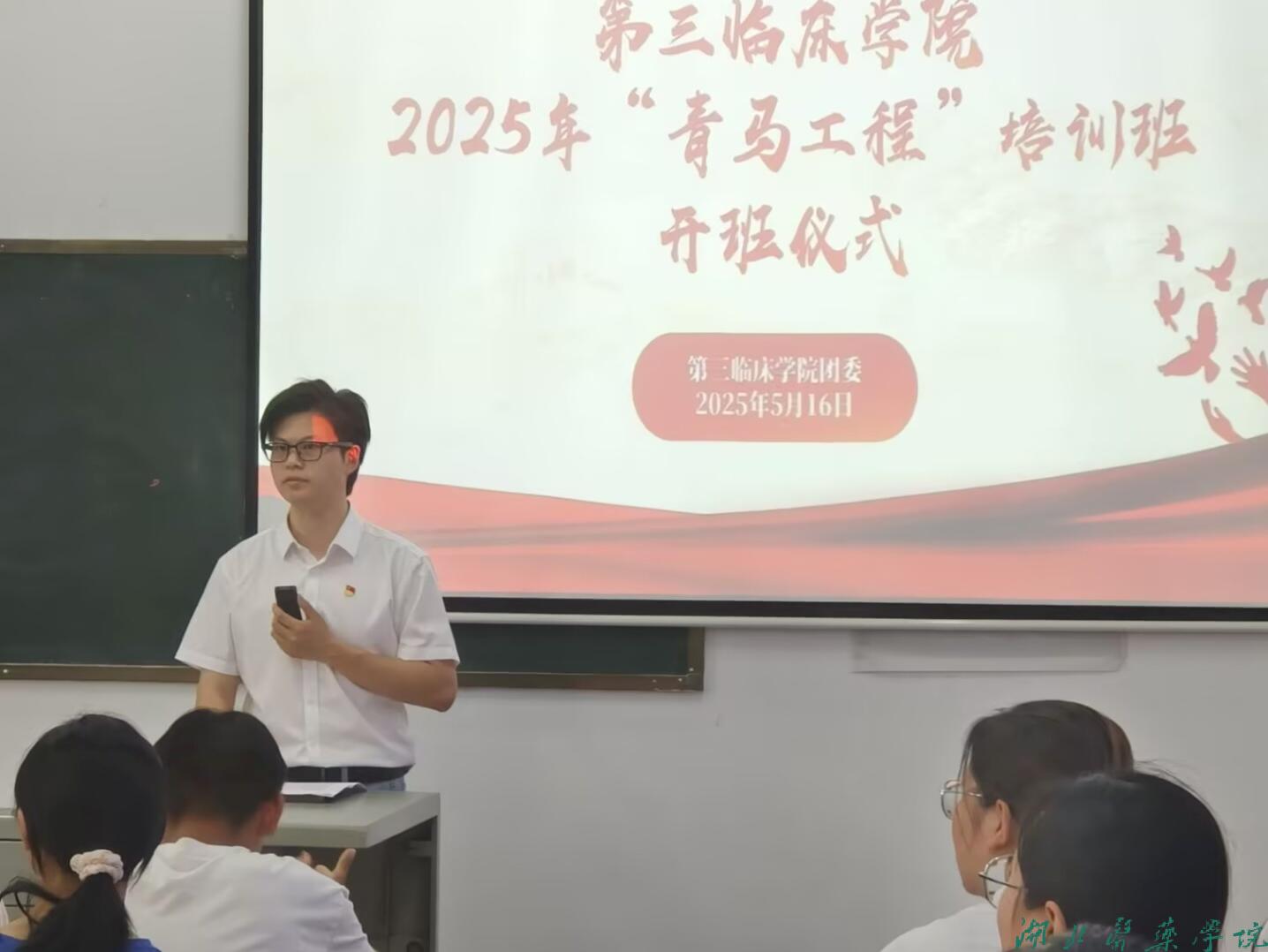 活动在奏唱国歌中拉开序幕,学院团委副书记朱力宣读《第三临床学院2025年“青马班”培养方案》及学员名单。学员代表易文杰做交流发言,表示将珍惜学习机会,严守纪律、勤学善思、勇毅前行。