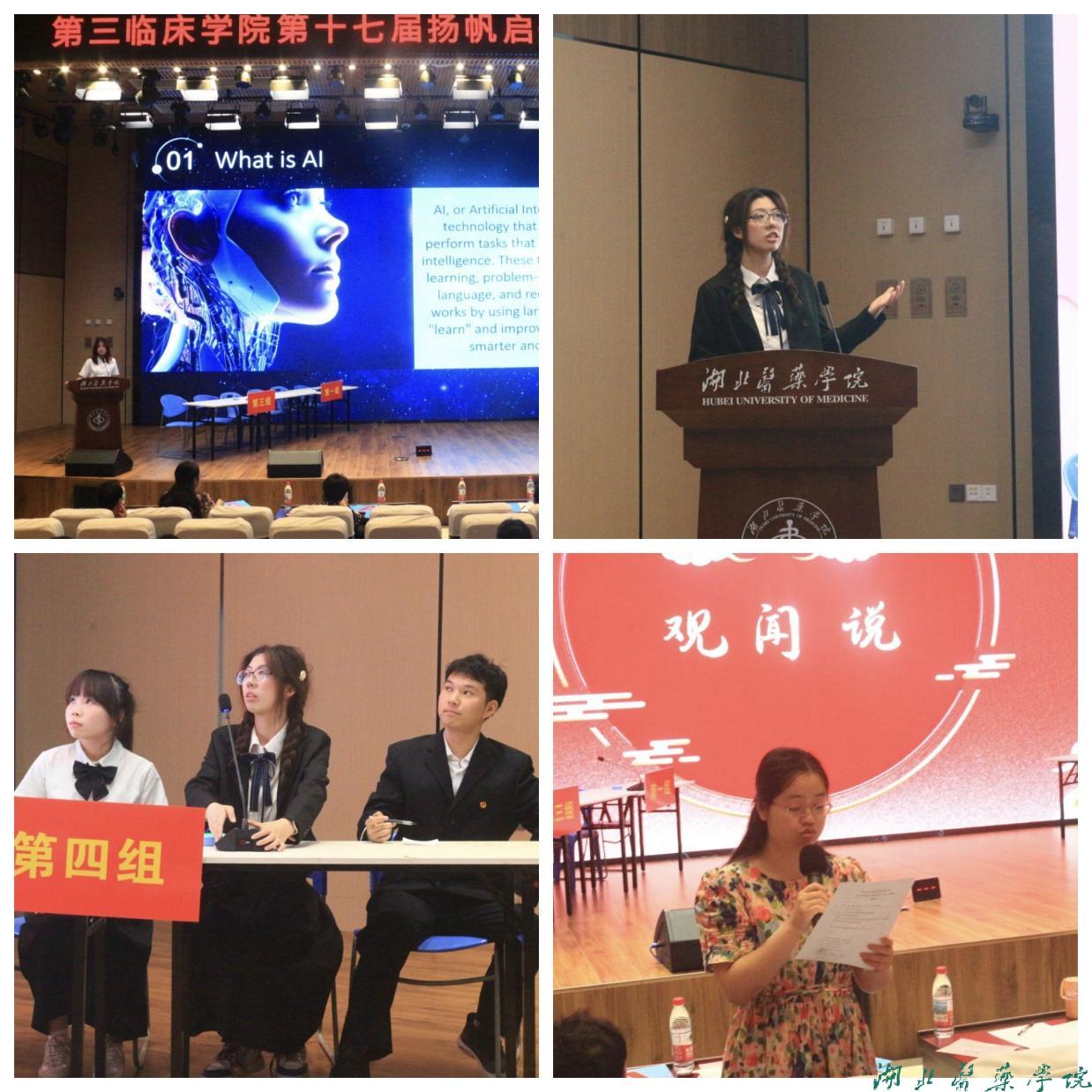 本网讯(通讯员 李晨曦 朱力)在湖北医药学院建校60周年之际,为了丰富校园文化,提升广大学子的英语能力。5月23日晚,第三临床学院在公卫大楼一楼学术报告厅举行“六十华章启新程,扬帆逐梦正飞young”英语风采大赛。活动特邀学校外语课部教师王国良、安湘君担任评委,第三临床学院党委副书记李芹、副院长李平飞、学工干部及部分学生共同参加此次活动。