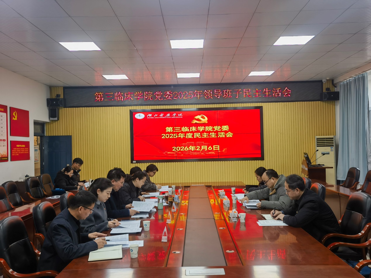 会上,桂程君代表党委汇报了第三临床学院党委2025年度民主生活会会前准备情况,会议以书面形式通报了《第三临床学院党委深入贯彻中央八项规定精神学习教育整改情况报告》、《第三临床学院党委2024年民主生活会整改落实情况报告》。桂程君代表学院党委领导班子围绕带头强化政治忠诚、提高政治能力等“五个方面”查摆问题;结合三峡大学原党委副书记、校长王炎廷违反中央八项规定精神问题的反面典型案例展开剖析,对班子查摆出的问题产生原因及下一步整改措施进行了阐述。随后,党委班子成员逐一进行对照检查,严肃认真地开展批评与自我批评。